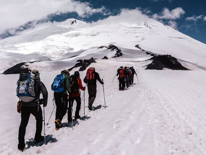 - 7) Climb to Elbrus summit at5,642 meters (18,510 feet). Descend to base camp. Sleep in hut.