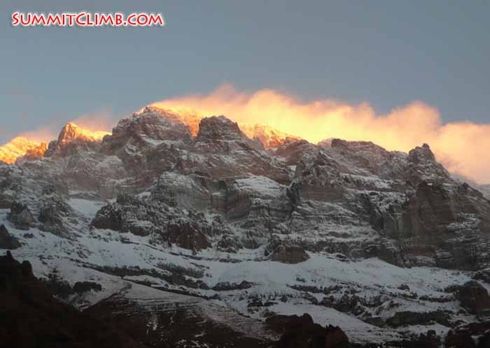 West Face of Aconcagua seen from BC. View of Camp 3 6000m (Thomas Pfeiffer).