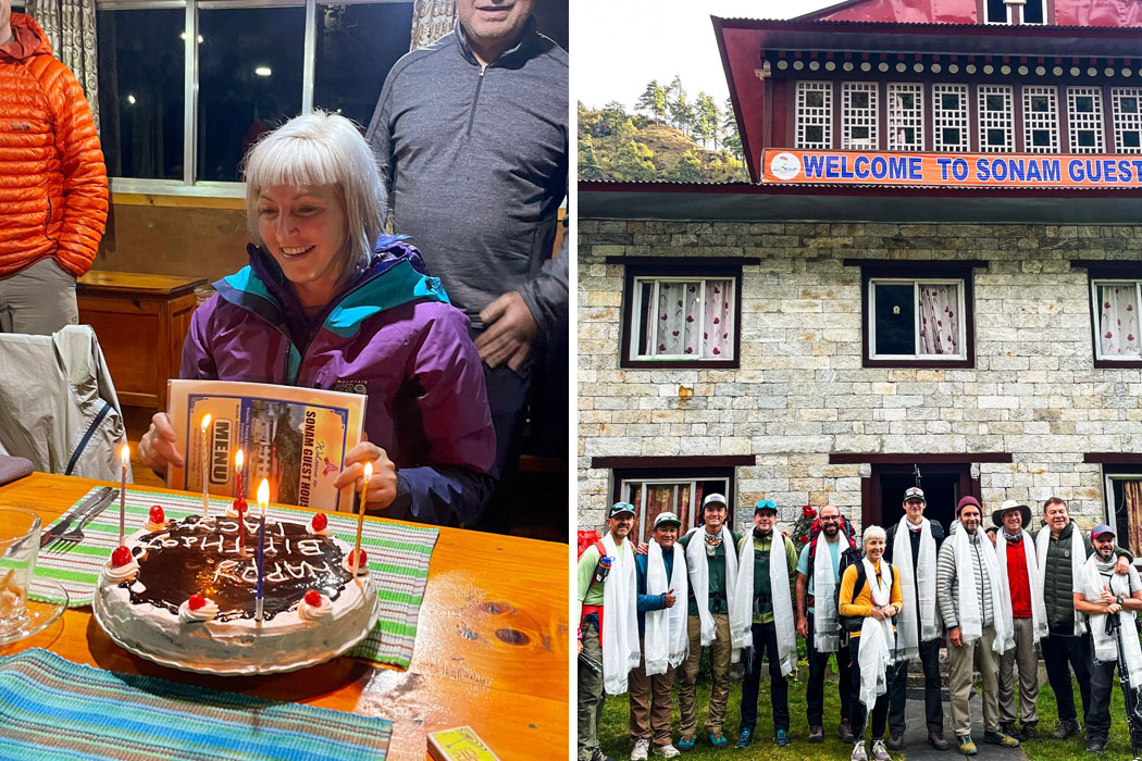 Photo caption: Birthday celebration. AmaDablam + Lobuche team. Photo Majid