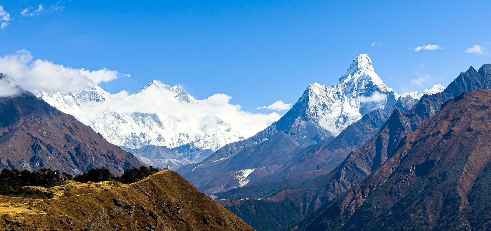 Panoramic view of the Himalayan range, including Mount Ama Dablam. Photo Paul