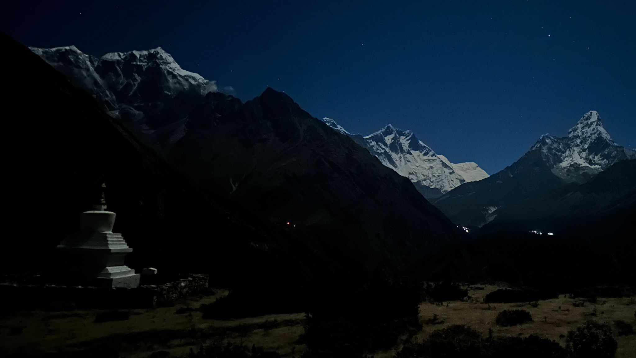Nighttime photo taken in Namche Bazaar. Photo by Napier
