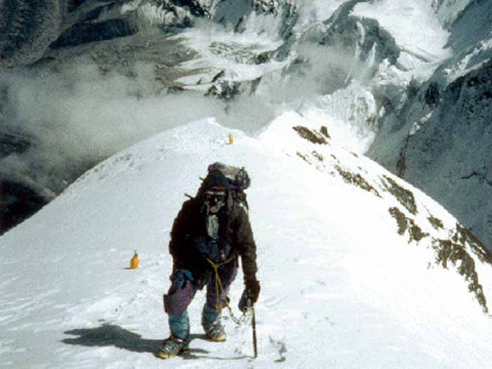 Roman making the traverse from the south summit to the Hillary step. Roman on the Hillary step. Roman under the south summit