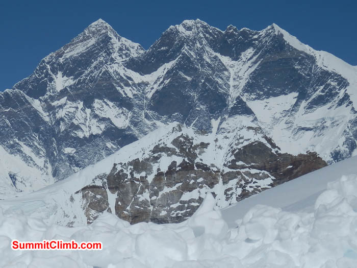 Our Baruntse team reached the summit of this remote mountain perched on the edge of the Khumbu Valley on 4 November. Baruntse has something for everyone, both novice and expert alike. Ours was the first and only team to reach the summit this season, due to a heavy snowfall which arrived between 12 and 18 October. We congratulate our group of members, men and women of all ages, and strong friendly Sherpas on a job well done. Nevertheless, we would like to send our condolences to all of the other teams who tried and especially to the other groups' families, colleagues and friends who experienced tragic loss of their loved ones. We extend our heartfelt condolences to you and yours. However, Baruntse was kind to us this year, and we were very lucky to be able to attain her summit. Also, our team was one of the few to ascend Mera Peak, and, once again, we wish to attribute that to our hard working members and Sherpas. Congratulations on a job well done. To finish off this unique expedition, our team was the first to cross the Amphu Labtsa Pass, bridging this year's snow laden gap between the Hongku Valley and the Khumbu Valley. All other teams had turned back for the previous 30 days until ours broke the trail through waste deep snow. To all of our SummitClimb Blog readers, please enjoy the member's and Sherpa's photos as we post them for all to see. It was a very challenging and rewarding expedition. Best wishes and thank you very much for your support.