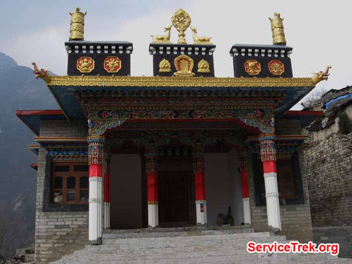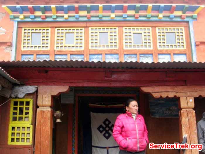Because the Deboche village is located in a relatively low altitude, there are trees, small charmingAlpine forests but still one encounters deep ravines andsuspensionbridges that can be scary and a thrill as you cross them, often in a company of yaks and horses. It is a beautiful village, and we stayed just a short walk from the convent, in a guest house called Paradise. It was not a paradise but it was warm, busy and charming. The young owners and their adorable daughterwere extremely lovely, the showers we usedwere comfortable, and the outdoor bathrooms were clean. These are small luxuries thatmake a big difference along the way.