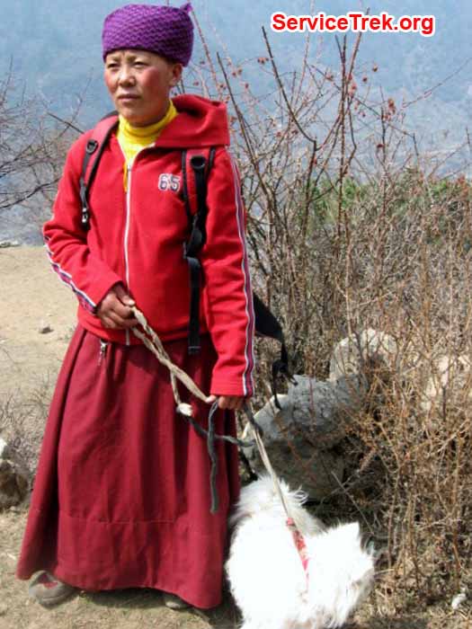 Trying to carry big load. Sherpa girl look at us