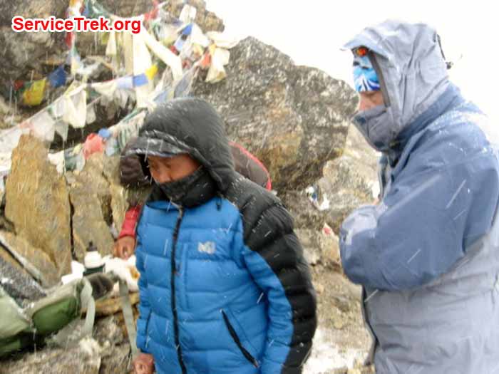 Suddenly one begins to worry about digestion, sleeping, elimination, indoor, outdoor primitive bathrooms, showers and brushing your teeth. Quickly one no longer worries about farting in all the inappropriate places, body odor or taking a “shower” in a cold shack while pouring warm water on your head. Really, one adjusts except for sleep. I had trouble sleeping as we climbed higher and that made me tired, at times too tired. To help me sleep, conserve energy and to battle the altitudesickness I begun taking small doses of medicine. It helped but still the three to four hour treks became six to eight hours, and to pass the Renjo Pass we climbed for more than ten hours in changing weather with snow and sleet as companions much of the way.
