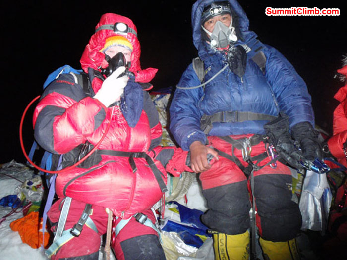 Janice Smith at Summit of Everest on 27 of May together with Gyalje (Photo by Tenji Sherpa). View of Mt. Everest from ABC.