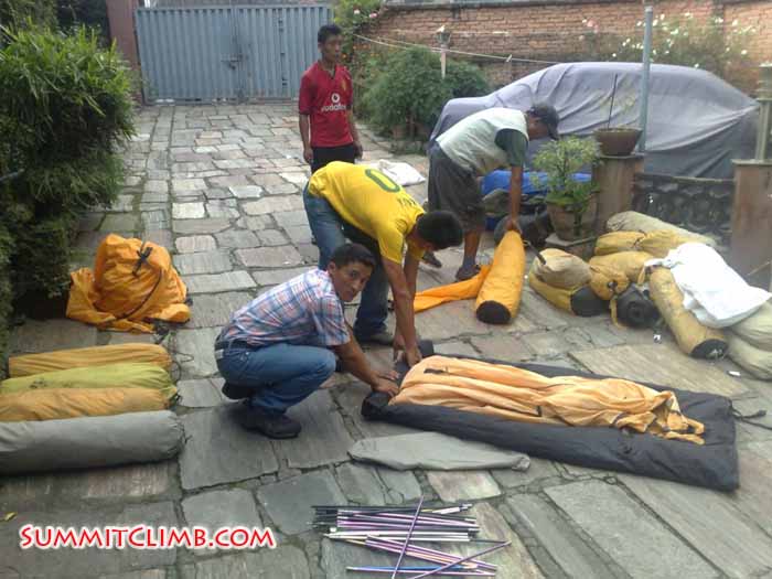 Today expedition leader Arnold Coster and our 8 member Sherpa staff packed and prepared all day at the Kathmandu SummitClimb Headquarters. The weather was good and we got a lot done! back to top