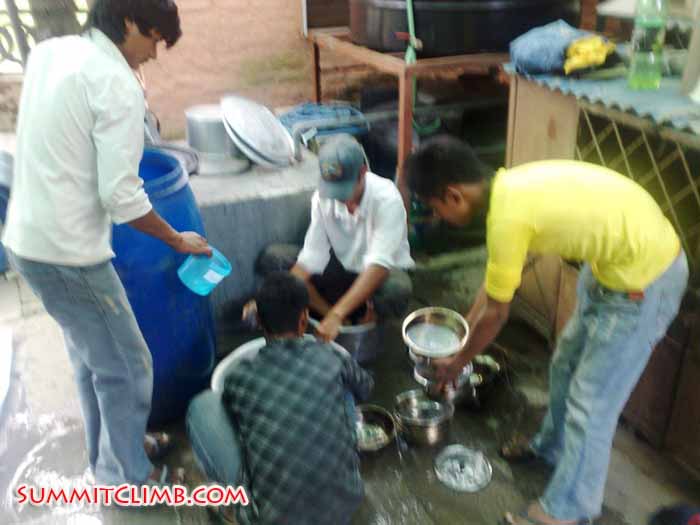 They wake us up with tea in the morning, followed by breakfast. When we came back from our hike they served us a delicious lunch and tonight we will be surprised with a tasty dinner again. This way we will stay strong, so if the weather clears we are ready to go high up the mountain.