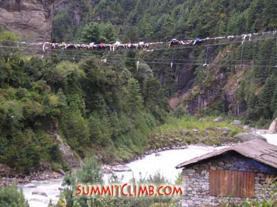 3) Fly from Kathmandu to Lukla 2,840 metre/9,300 feet. Trek to Phakding, where we camp in a field on the river bank at 2650 metres/8,700 feet.