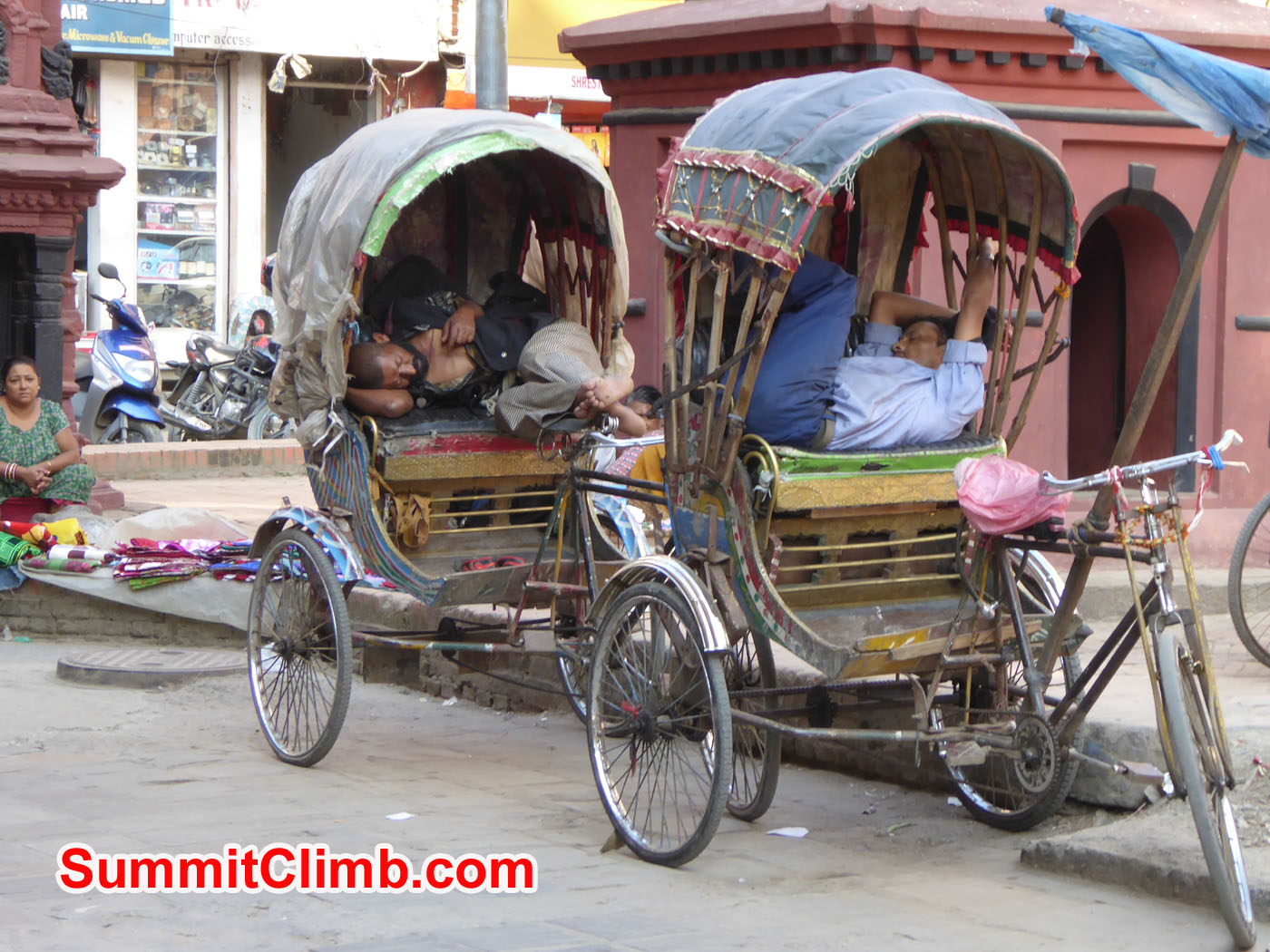 Welcome to Sagarmatha National Park. Team member resting in warm tea house. Photo Charles Szekeres.