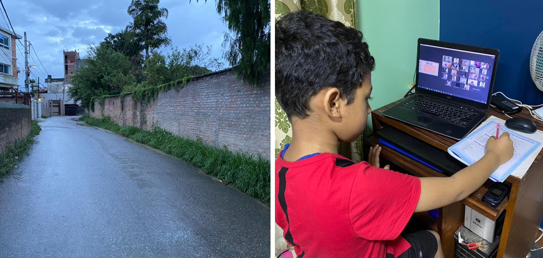 We sit down to table to enjoy a delicious home cooked lunch with all fresh ingredients from the local farms, with fresh veggies and home made salads of many types, freshly picked herbs, freshly cooked chicken from the poultry farms, washed down with fresh cold filtered water from the well. Straight out of the garden, you can taste the freshness in every bite. It is so nice to share the bounty of the valley with our gracious hosts. Their son is 10 and tells the story of his online schooling. We even get to watch him doing a zoom class while we are there. They are studying English at the moment, and we enjoy observing he and his 20 classmates being led in English through the word scramble of the day, as they try to pick out English food oriented words on their laptop screens guided by their teacher, who is conducting the entire lesson in English. We note that this would not be possible in remote areas of Nepal, such as the Khumbu Valley where Everest is located. The wifi there is not available to the local people for free, if there is any wifi at all.