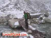 | Stefanos Voutselas films Les Williams descending the big scary 3-section ladder at the top of the Khumbu Ice-fall. |