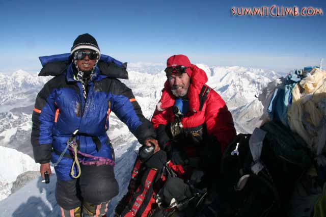 We had excellent expedition leadership from Arnold Coster (photo right: Ang Sherpa and Ms. Sophie Denis on the summit of Everest).