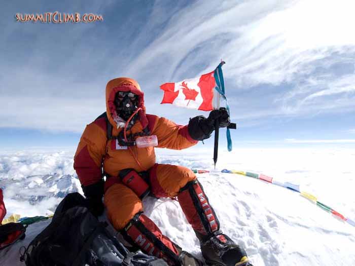 Ang Sherpa and Ms. Sophie atop Everest. John Dowd and Tenji 1, Everest summit. Dr. Ken Stalter and Dawa Sherpa (they are on the right side of the photo) on the summit of Everest. Matt Lipscombe-Everest. Tenji 2 on the summit of Everest, John Shelton-Smith's sherpa. Dr. Christian Otto (Eric Otto)-Everest. Eric Otto, the youngest Canadian to summit Mt. Everest (Christian Otto). The Otto brothers (Christian Otto)-Everest. Ms. Agnieszka Kiela-Palys on the summit of Everest. Andrew Brash on the summit of Everest. Laura Mallory on top of Mount Everest. Laura is the youngest Canadian woman to climb to the summit (Pasang Norbu Sherpa). Dan, Alan, and Adam Mallory on the summit of Everest (Sange Sherpa). Lakpa Sherpa and Mike Browder on the summit of Everest (Pasang Sherpa). John Shelton-Smith. Matt Lipscombe and Nima Chirri.