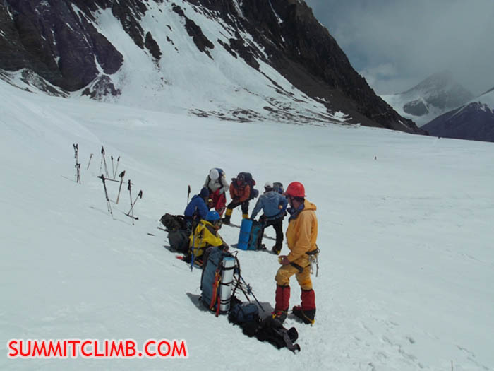 The Summit group who left yesterday reached C2 at 7800m and is doing well and will be heading to C3 at 8300m tomorrow to position themselves for their summit push on the 22nd. At the moment Urs, Jerry, David Roesky, Lakpha Sherpa, Palden Sherpa and Lakpha Nuru are in C2.