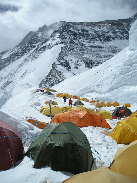 Hi, As this photo shows, ours was the first tent on the north col on 16 April. Thanks to Ozark tents. Mon Tindale took this photo looking up toward camp 2 at 7500 metres. Looks like part of Neil Wells appears in this photo also. It was a great day on the Col!