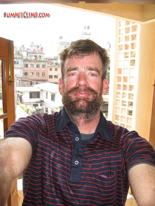 If you like, we could start a special memorial fund called "The Keith Spencer Memorial Fund" and educate some kids and provide health care in his name (photo right by Erik Petersen: Keith back safely in Kathmandu after summiting Cho Oyu in autumn 2008, right before going to the barber for a shave).