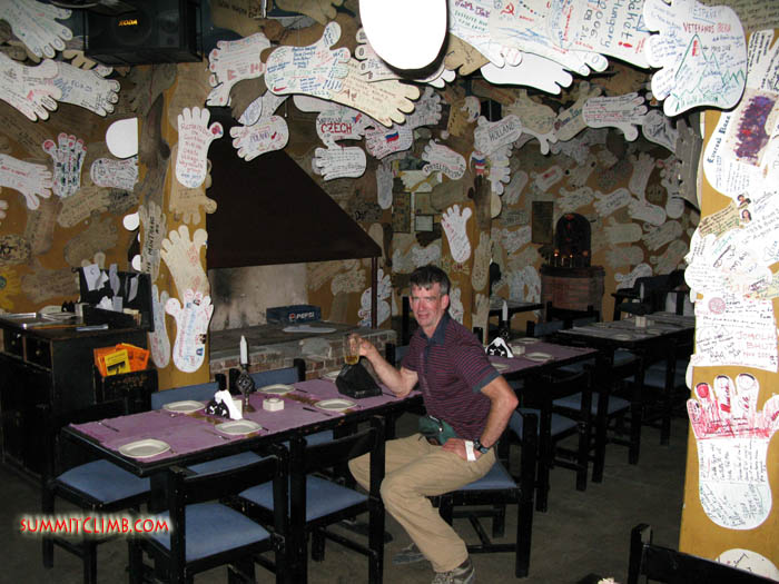 Keith having lunch in the famous 'Rum Doodle' restaurant, back in Kathmandu after summiting Cho Oyu in autumn 2008 (Erik Petersen).