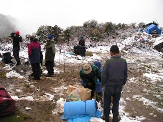 Snowy camp at 3600 metre Chulim Kharka.
