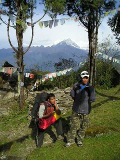 We are in Nepal at 2800 metres in the beautiful and green hill village of Puiyan, on the trail to 6500 metre high Mount Mera, with a group of 6 members from Australia. Our trek is dedicated to the Australian Crocodile Hunter Steve Irwin. He will be missed, and we send our condolences to his family. This group of Australians I am with are from New South Wales.