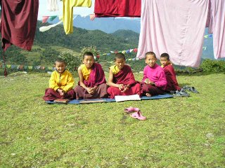 Apprentice monks studying their prayer books in Pangom.