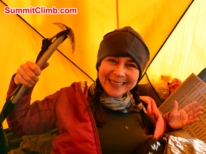 - Now packing in camp 1 for ascent to camp 2. Winds lighter last night. We were able to rest. It seems a weather window opens for us.