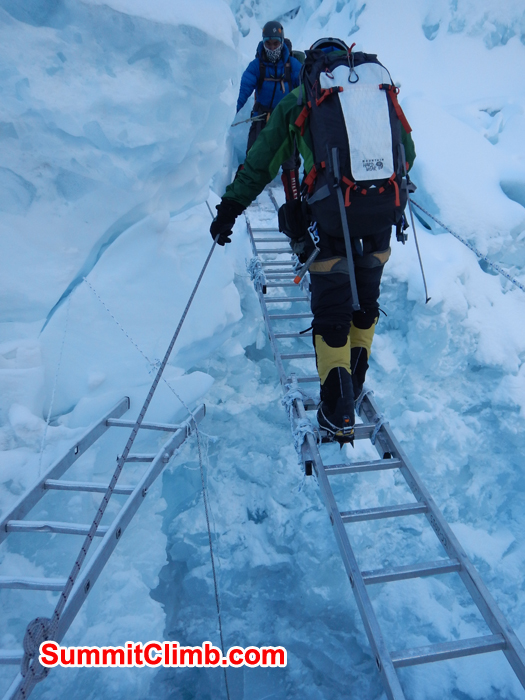 Crossing khumbu icefall. Photo Gary Ervin. Gary and Sherpa at South Col. Photo Gary Ervin