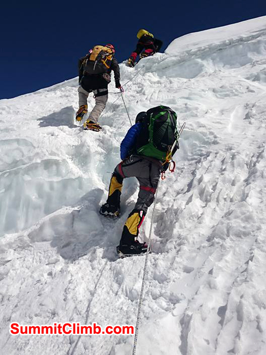 - All SummitClimb Everest South Col members now descending Lhotse Face down to camp 2. Hopefully they make it before today's storm.