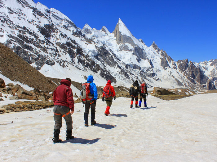 June and July. This world famous trek is very safe, uncrowded, and much more scenic than Everest Base Camp. Dan Mazur leads this exciting remote trek on the worlds largest glacier system. Our 2019 trek was fabulous. Price includes optional trek over Gondogoro La Pass. $5150 , £3,850, €4,550 for full service.