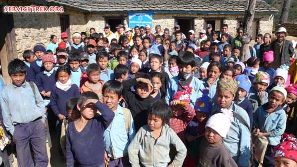 Photo taken before earthquake. Students at Chhermading School with Dave, Brian and Jackie in the back row.
