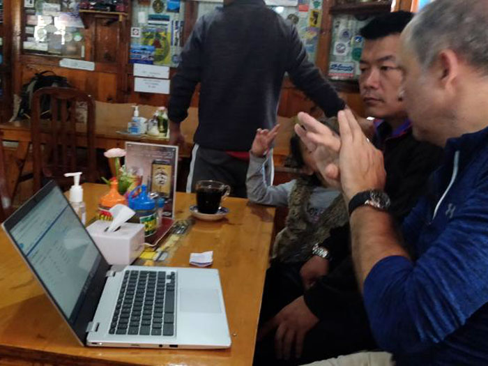 The Salesforce Team, under the leadership of Andrew Dunn and Mingma Sherpa, made their second annual service trek into the Khumbu Valley. Last year they did construction work on Nepal's oldest convent, the Deboche Nunnery. This year's goal was development of a patient records management and referral system which will be applied in rural medical facitilies of Nepal. The Khumbu Valley was chosen because of its rural nature and availabilty of wifi. The Salesforce team designed the system for 6 months prior to the trek, and then, during their journey from Lukla to Everest Base Camp, met with representatives of the health posts and hospitals in the Khumbu Valley to present the software and also donated 10 laptops and a cc tv camera system for Khumjung's Sir Edmund Hillary High School. For their awesome generosity we are all deeply grateful. Please enjoy the photos. Thank you very much!