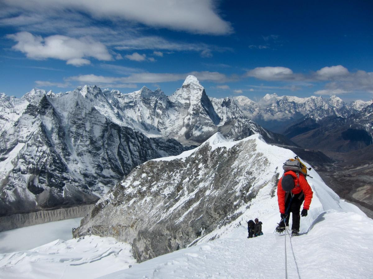 LobuchePeak.com - Everest Glacier School - October - November 2021 and 2022. 18 Days. OR 5 day option. Learn high altitude mountain skills and climb a 6000 metre peak with great views of Everest. 18 days in Nepal. Full Service: $3450, £2,650 €3,050. 2020. 5 day option: $1850.
