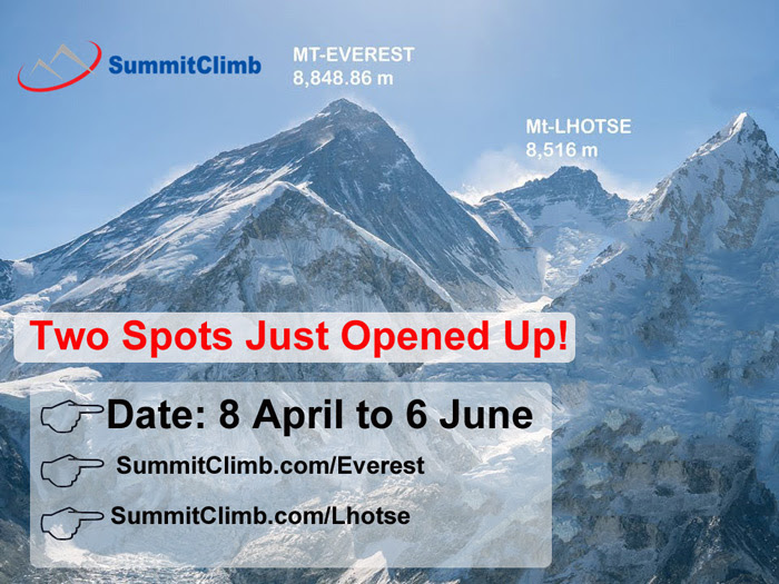 2 Last-Minute Spots for Everest and Lhotse