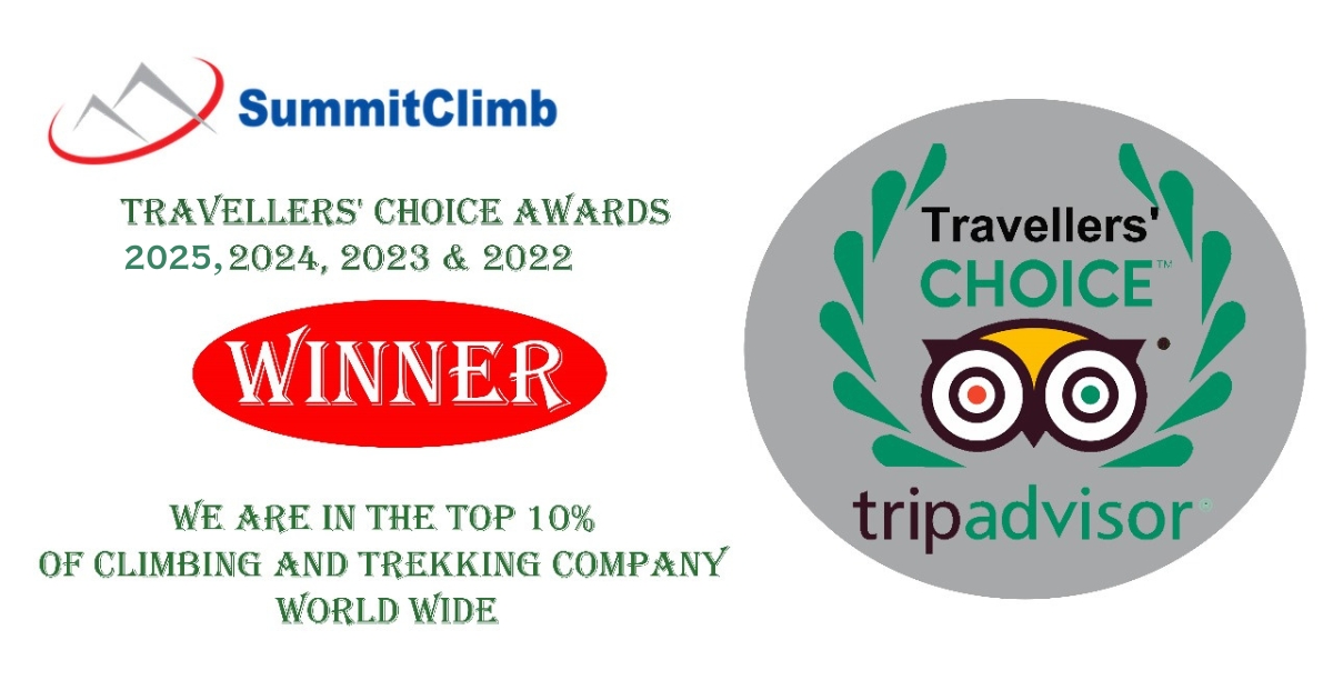 BIG ANNOUNCEMENT : SummitClimb Wins 2025 TripAdvisor Travellers’ Choice Award – Among World’s Top 10% in Climbing & Trekking! Thank you to our incredible team and clients for making this fourth consecutive win possible.