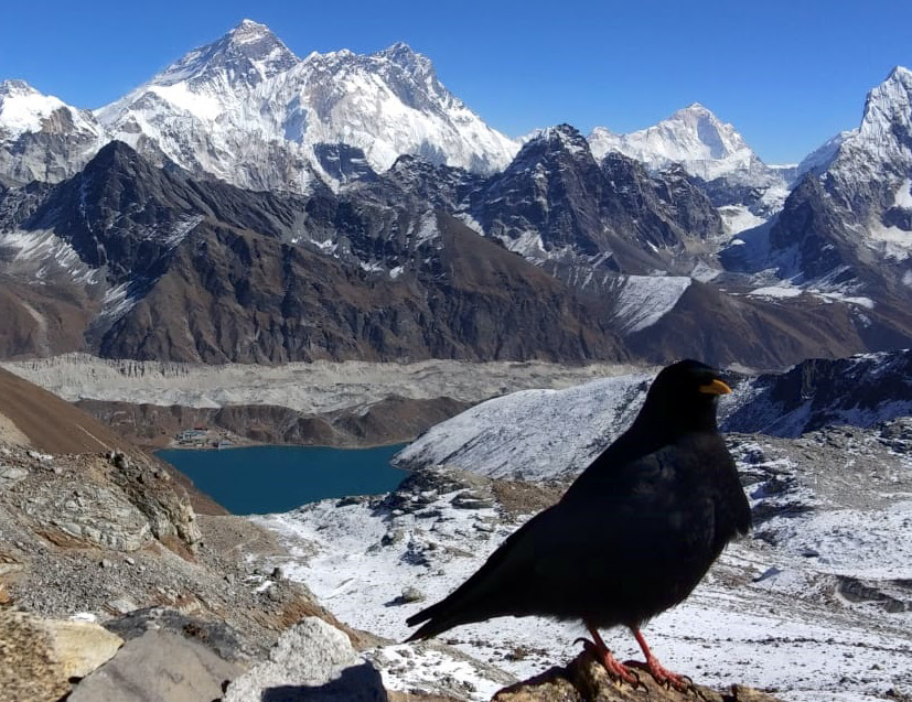 We are now surrounded by Icy peaks jutting high above green grassy meadows, rivers rushing forth from massive glaciers, grazing yak bells tinkle in the breeze, carrying the smell of delicious fresh roasted potatoes with yak cheese from local lodges we call "teahouses".