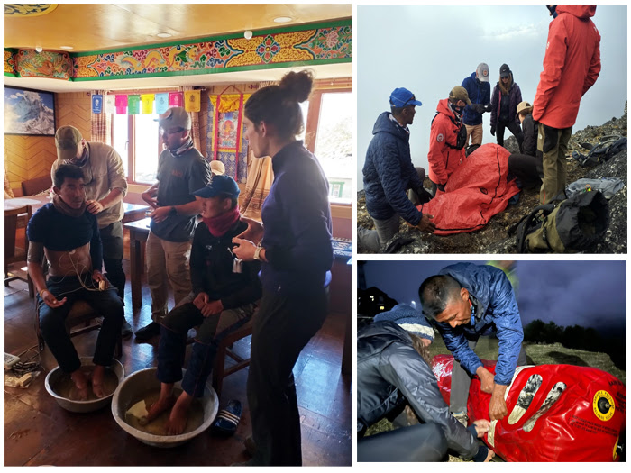 Our Rescue and Medical Training group rescued frostbitten porters from another team. Big thanks to Chris, Benjamin, Sophie, Jonathan, Esteban and Erin