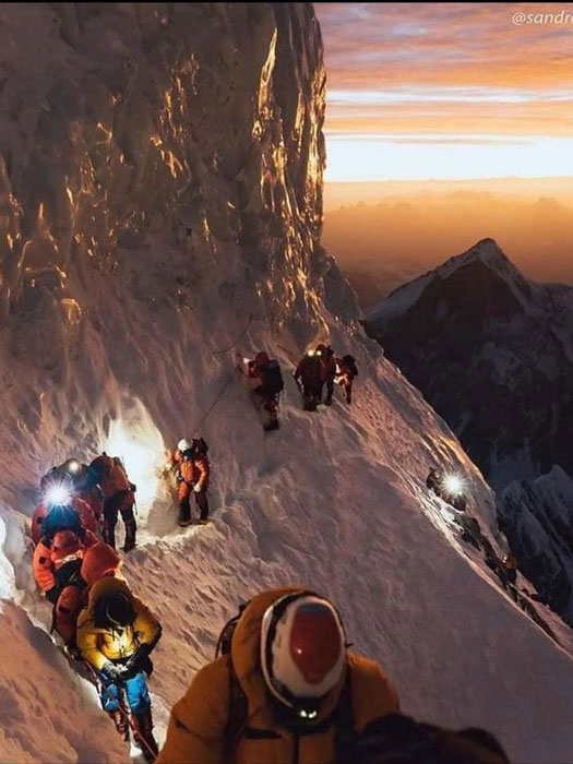 Mount Everest Nepal - Route first climbed by Hillary and Tenzing. Classic climb with the most experienced team. Sir Edmund Hillary from New Zealand and Namgyal Wangdi - Tenzing Norgay from Nepal and India made the first ascent on 29 May, 1953 at 11:30am . SummitClimb Leader Dan Mazur climbed Everest together with Into Thin Air Anatoli Boukreev and Vladimir Balyberdin, attempting to become the world’s fastest humans to summit Everest. During their 14th successful Everest expedition, Dan and David put 8 members and 10 Sherpas on the summit in May 2023. A few spots on our 2024 Everest permit have just opened up. Please tell your friends!!!