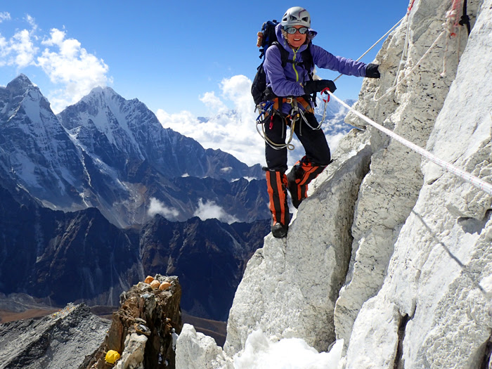 Jessica and Tenji topping out on Ama Dablam: beautiful day in November.