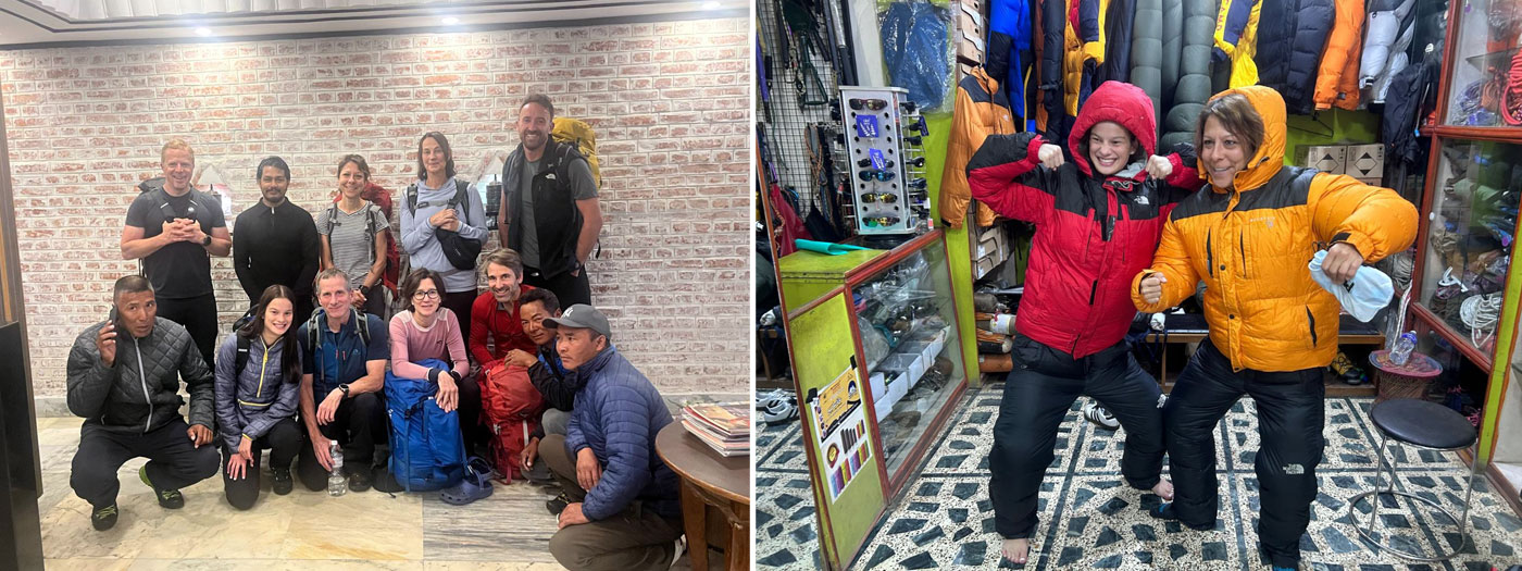 Caption : We checked some more member’s gear and went shopping to rent/hire their high altitude down gear, mitts, boots, and sleeping bags.