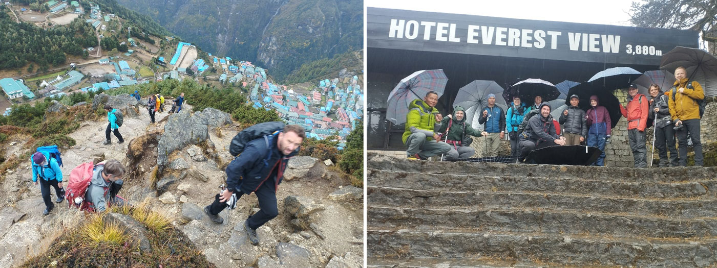 BTW our members who began their trek early have now reached Namche, after hiking up the big Namche Hill and are relaxing comfortably in their Namche hotels. Have fun up there friends!!
