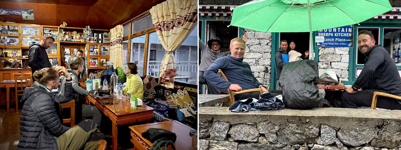 Caption : Lunch stop at Fungki Thangka, Our Members at Sonam Lodge Pangboche. Photo : Wendy.
