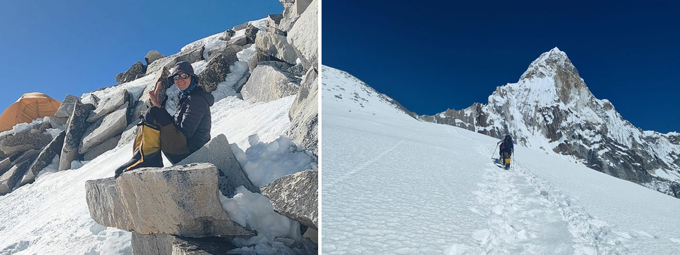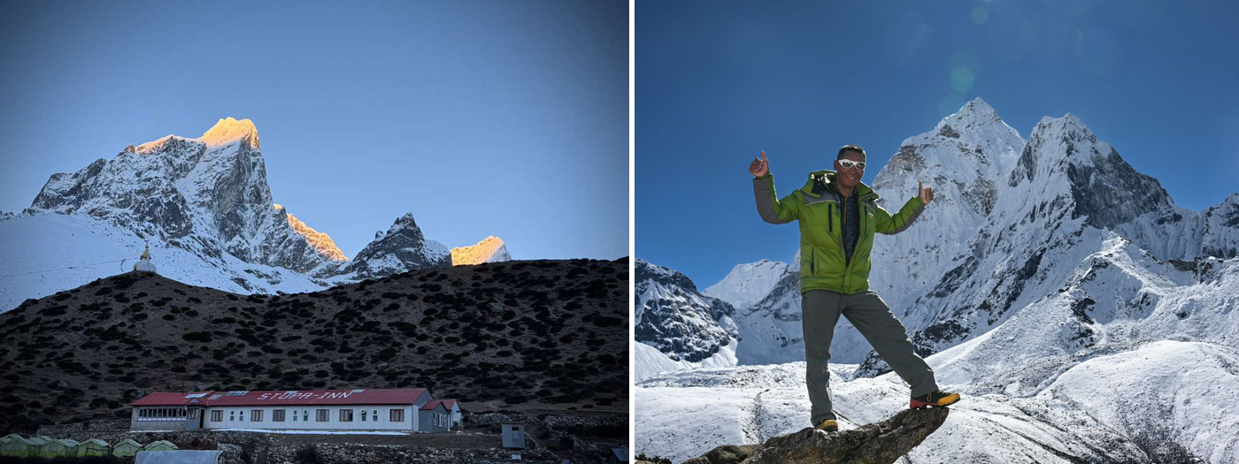 Caption : Member with Ama Dablam in the background. Photo : Daniel P