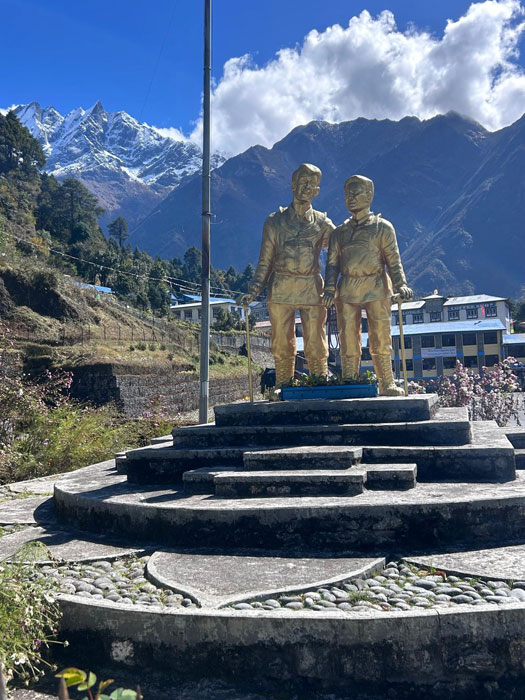 Caption : New Tenzing and Hillary statue on a beautiful sunny day at Lukla Airport. Photo : Dan.