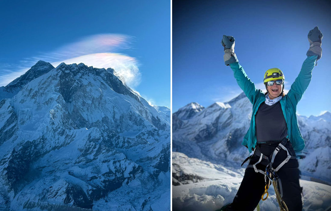Caption : Everest seen from Lobuche Peak. Photo Nat. At the Summit Photo : Wendy.