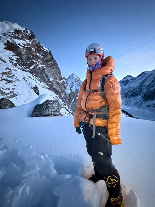 According to Sebastian: What is challenging about the climb: Just as we were leaving C2 at around midnight, we began to climb up the Grey Tower. There was a person coming up behind me and they wanted to pass me. However, I didn’t feel comfortable just stepping to the side of the path, due to its narrowness, so this person was right on my butt for the whole grey tower until I found a good place to get out of the way so they could pass me. Going from C3 down to C2 I felt very exhausted and this part of the descent was quite challenging for me.