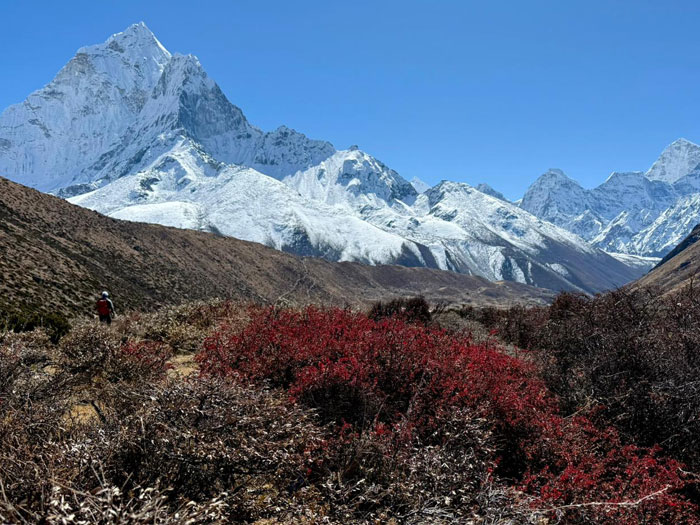 Caption : Trekking through the stunning Khumbu Valley — breathtaking views, crisp mountain air, and unforgettable moments on the way. Photo : Daniel P.