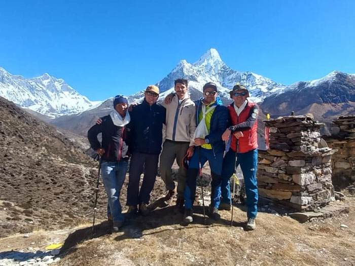 Caption : Members at Dhugla and Ama Dablam and other Himalayas. Photo : Sebastian