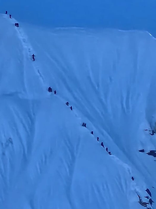 Caption : You can see the team on the summit ridge. They began their summit push at 1 a.m. Photo Dorje.