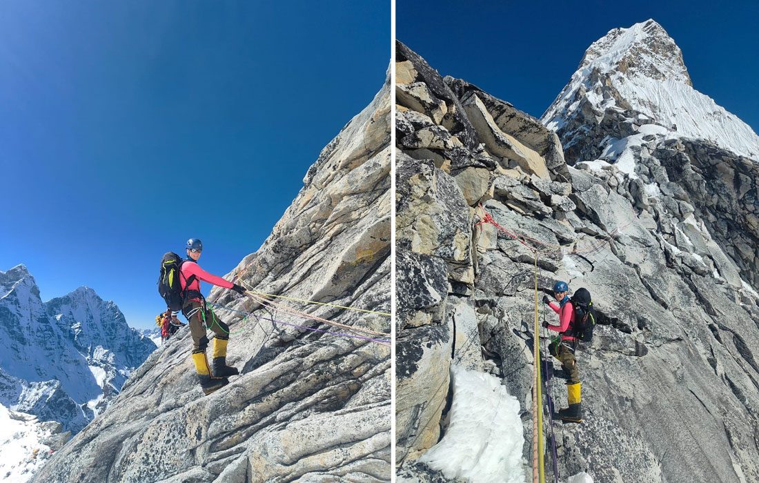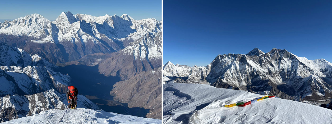 Caption : Almost there. Summit of Ama Dablam, there you can see Everest. Photo : Killian.
